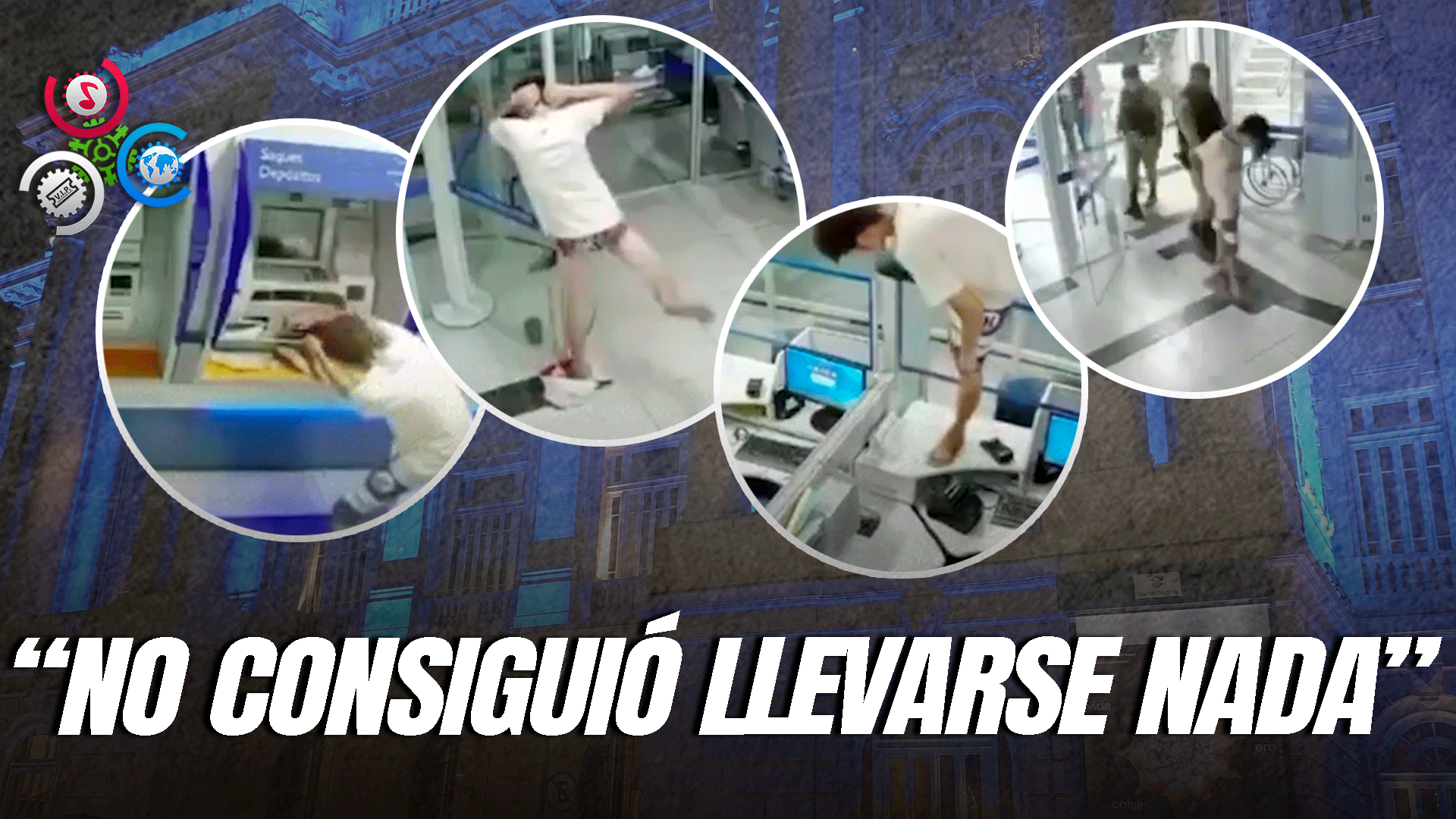 De acuerdo con las imágenes captadas por las cámaras de seguridad, el hombre forcejeó con la puerta durante alrededor de veinte minutos, primero prensado por la cintura y luego por el cuello. En medio del forcejeo perdió la bermuda —quedando sólo en ropa interior— mientras luchaba por liberarse. Tras zafarse, continuó deambulando por la sucursal revisando escritorios, cajones e incluso intentó acceder al área del cofre. Aun así, no logró sustraer dinero alguno.