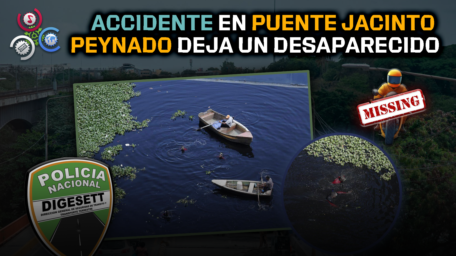 Equipos del Cuerpo de Bomberos y al menos tres buzos realizan labores de búsqueda en el río Isabela para localizar al desaparecido, mientras agentes de la Digesett implementaron un contraflujo ante la congestión vehicular generada en la zona.